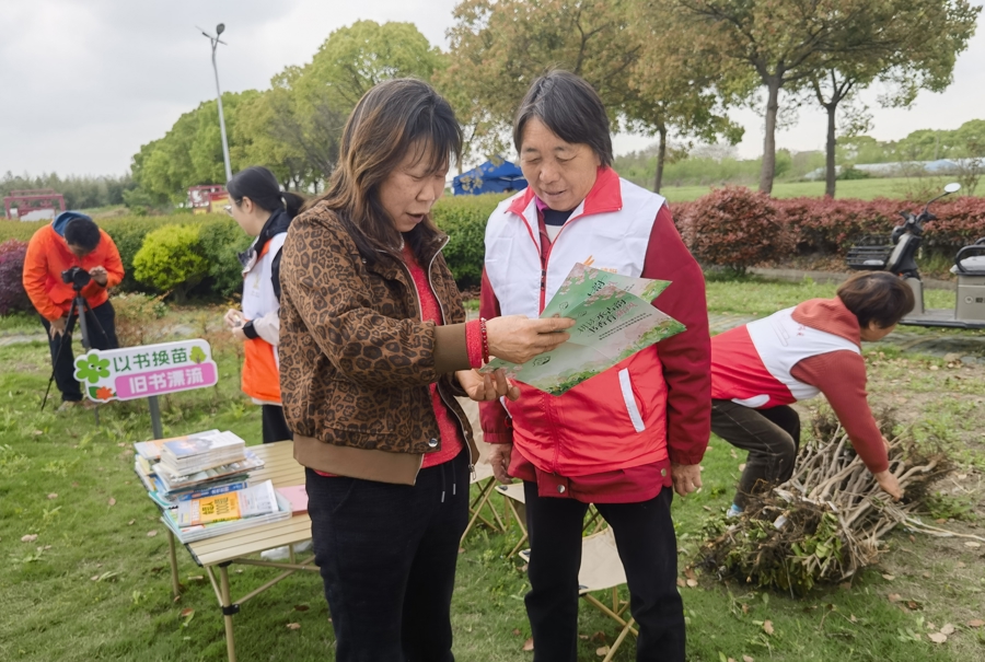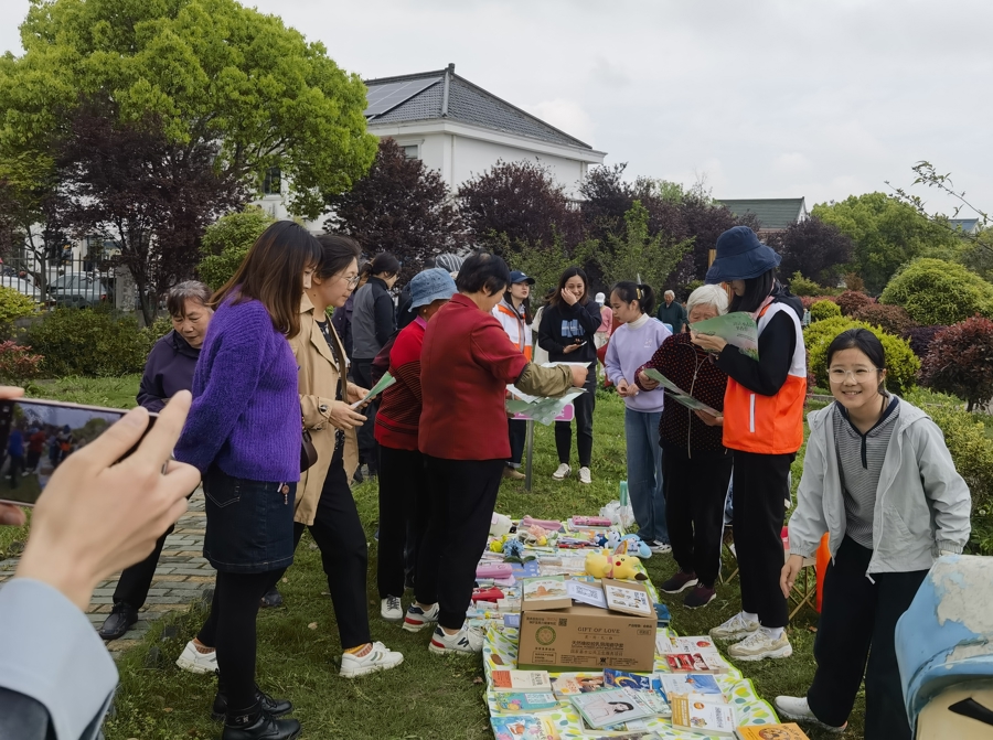 “我的书能帮到别人,比放在家里更有意义。”暮春四月,暖意浓浓,沪郊金山亭林镇新巷村的“龙飞巷头”百姓广场上人头攒动、笑语不断。