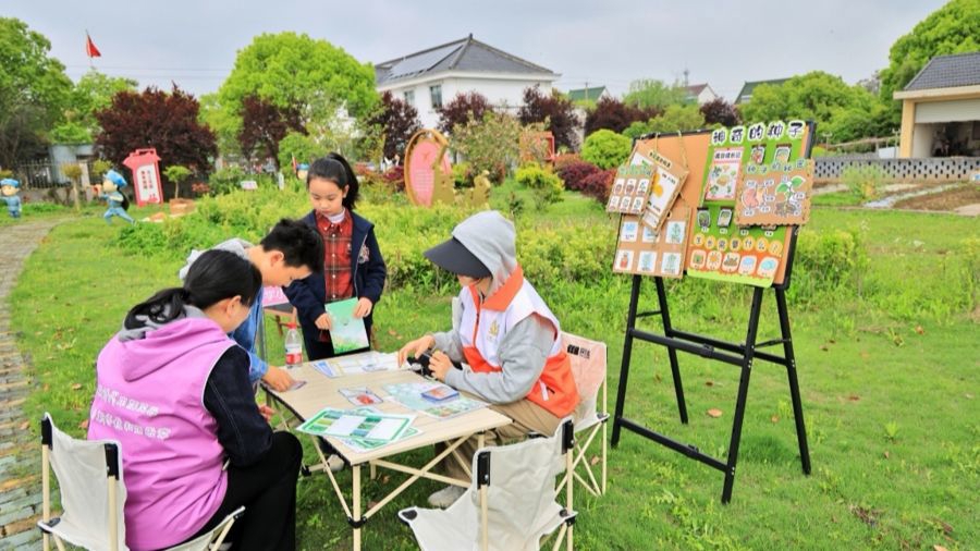 孩子们是这场阅读盛宴中最活跃的主角。“童声巷语”小舞台上,亭林小学的学生和村里的萌娃们轮流登台,分享绘本故事、红色经典和农耕趣闻。