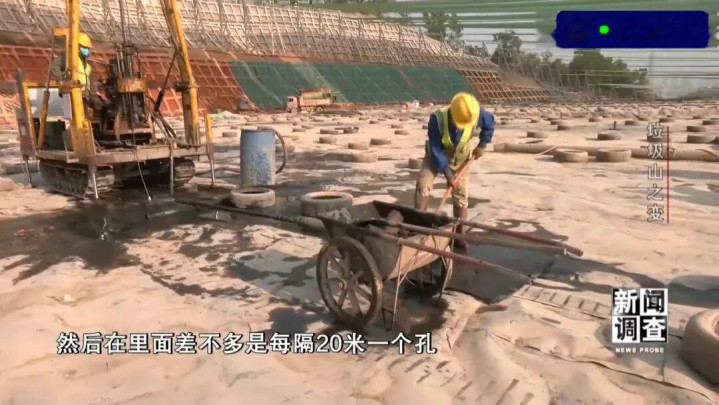 深圳市罗湖区城管和综合执法局党组成员副局长叶彬:我们在项目开始的时候请了国内顶尖的院士团队,来对这个填埋场做了目前国内能够看到的最详细的一次堆体调查。一共打了七百多个孔,差不多每隔20米一个孔,进行了钻探。实际上我们在挖开的时候发现,有些填的范围可能是超出了原先图纸的范围,那导致开挖过程当中可能就会随时要进行修正。